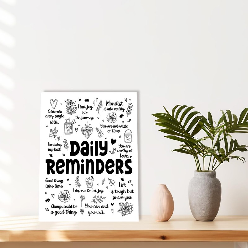 YEOION Daily Reminder Wall Decor for Women Girls,Inspirational Daily Affirmation Wall Art Canvas Frame Print for Therapy Office Women Room Wall Decor