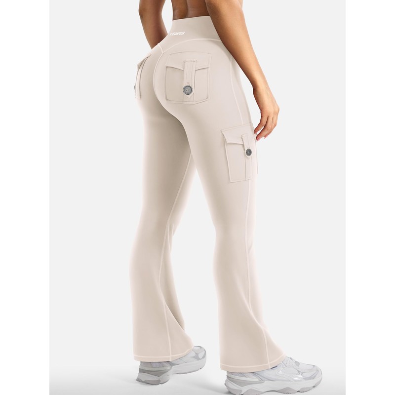 YEOREO CoreFlex Women Workout Flare Leggings with Pockets Scrunch Cargo Gym Yoga Leggings Light Khaki L