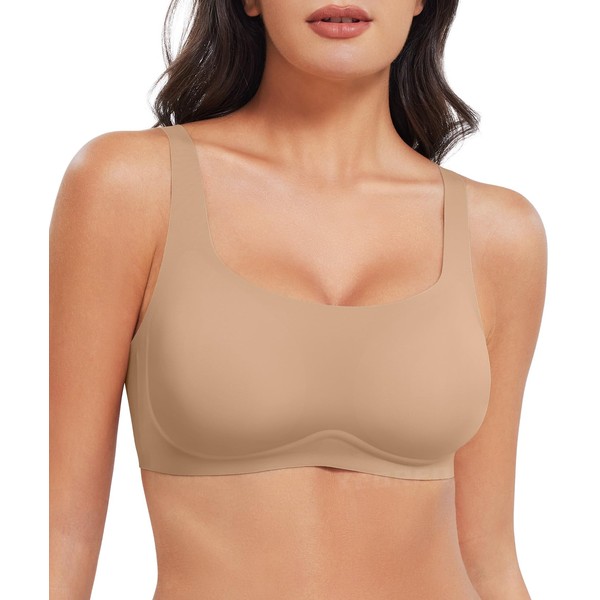 YEOREO Womens Everyday Bra Scoop Wireless Bralette No Underwire Corriney Full Coverage Push Up Bra, Khaki, Large