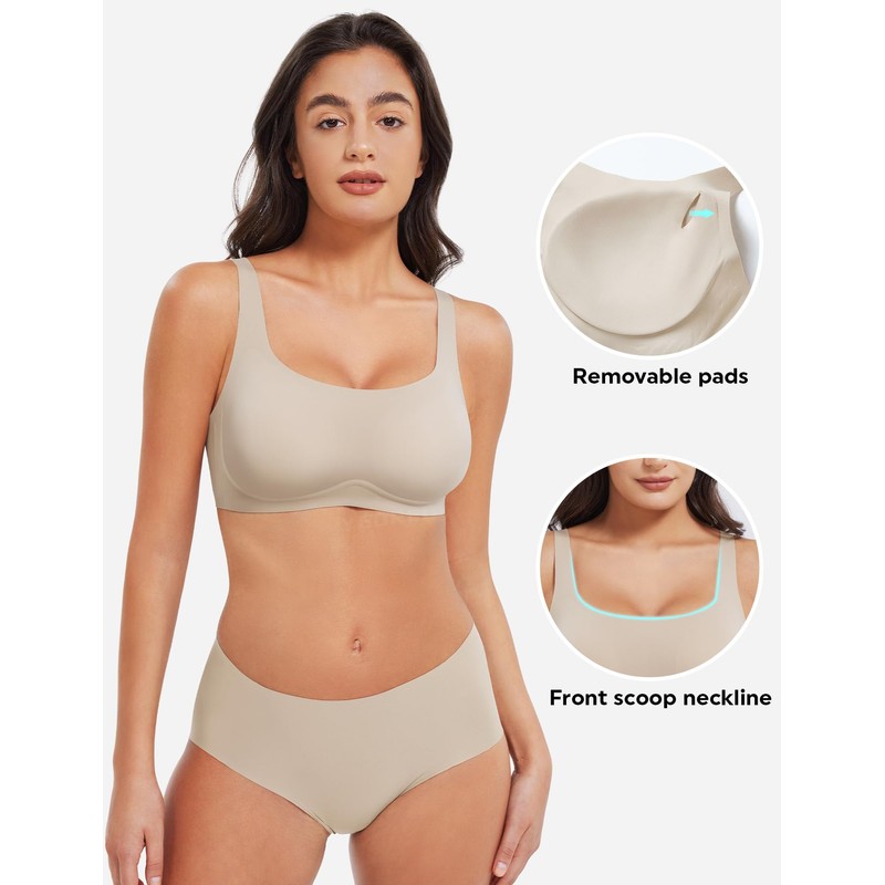 YEOREO Womens Everyday Bra Scoop Wireless Bralette No Underwire Corriney Full Coverage Push Up Bra, Milk Coffee, Medium