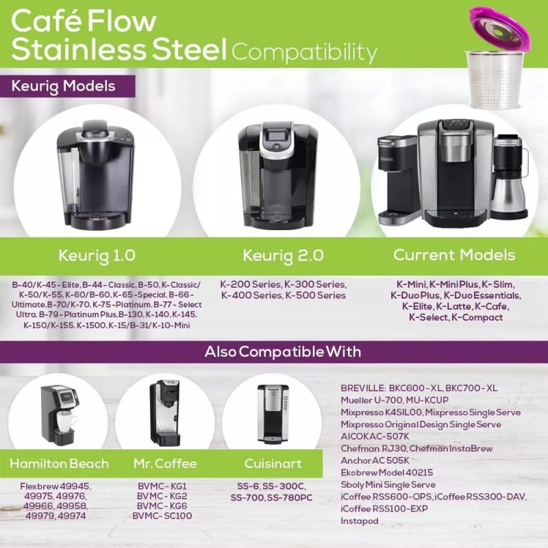 Taza de filtro recargable de cápsula de café de metal reutilizable de acero inoxidable Cafe Flow | Compatible con las cafeteras Keurig 1.0, 2.0, K-Mini, K-Duo, K-Slim y Select Single K Cup (ver tabla de compatibilidad)