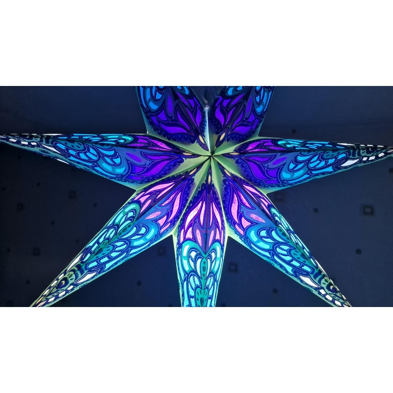 YEPSIO Paper Star 7-Pointed Lantern Lampshade Paper Star Light Shades Large 60cm Star Hanging Decorations for Christmas Wedding Home Decoration Birthday Party (Glitter Blue, Purple, Multi)