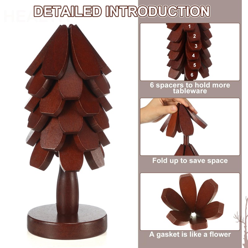 - Ingenious Design: our wood tree coaster set features an elegant and beautiful Christmas tree design that unfolds into the shape of a flower when you remove the wooden coasters from the stand and place the cookware on them; When you pick up the cookware, the coasters instantly shrink back into the tree shape; Adding natural beauty to your kitchen and dining table