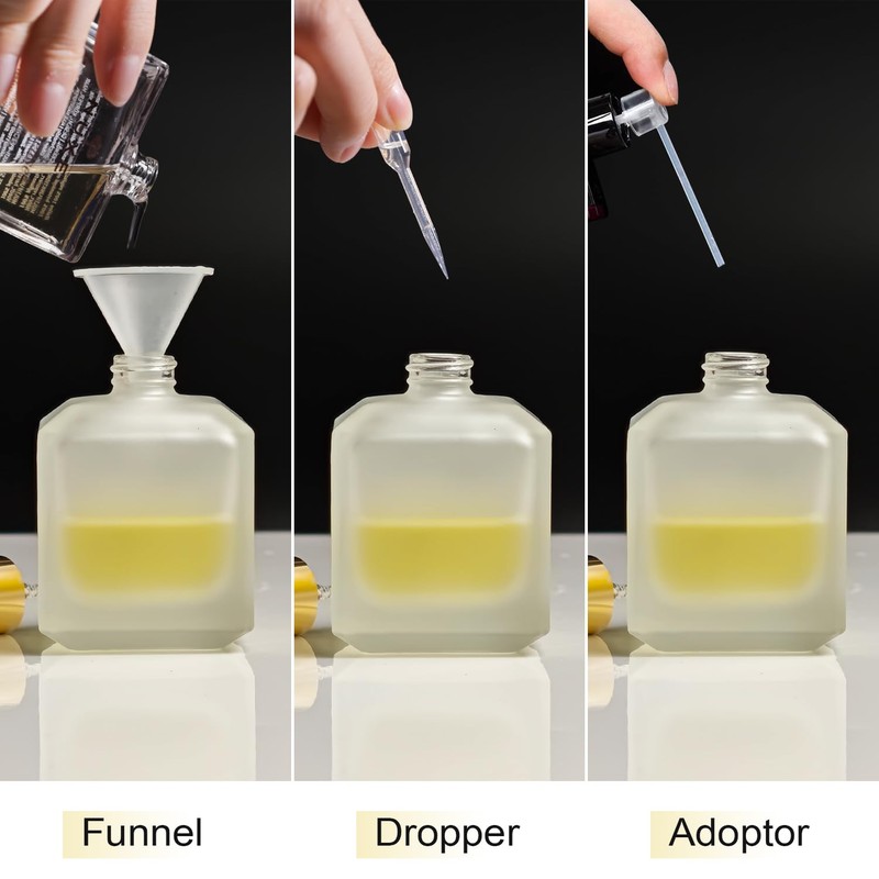 - Package:1 Pack 50ml/1.7Oz Glass Perfume Spray bottle and and 3 kinds of perfume dispenser(1 funnel,1 dropper,1 transferer).It is easy to dispense liquid into the perfume atomizer.