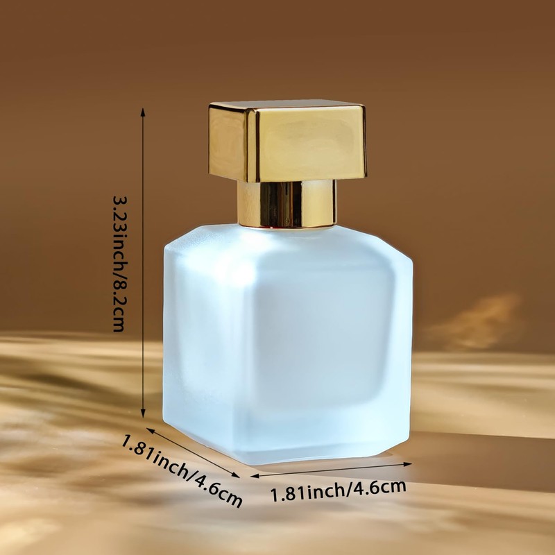 Yerpkefey 50ml/1.7 Oz Glass Spray Bottle Perfume Atomizer,Glass Perfume Square Refillable Spray Bottle Empty with 3 Kinds of Dispenser (Frosted)