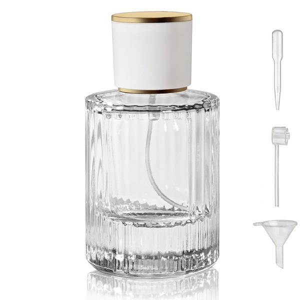 - Package:1 Pack 50ml(1.7Oz)Round Glass Perfume Spray bottle and and 3 kinds of perfume dispenser(1 funnel,1 dropper,1 transferer).It is easy to dispense liquid into the perfume atomizer.