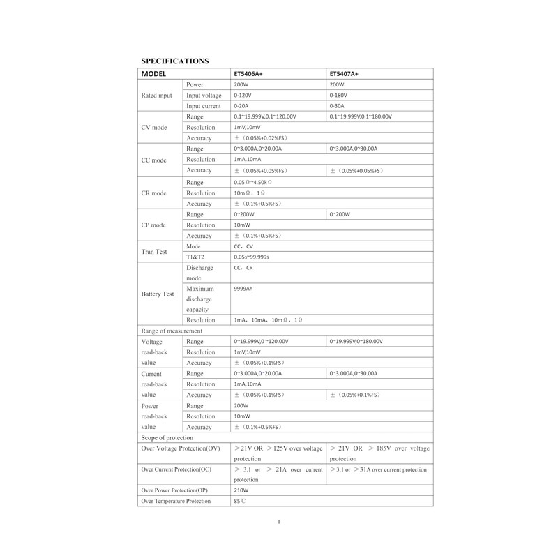 - 【ET5406A+ Single Channel Programmable Electronic Load Testers】provides 1mV/10mV, 1mA/10mA high resolution and precision with superior performance;Adopting LCD segment code screen with adjustable backlight;