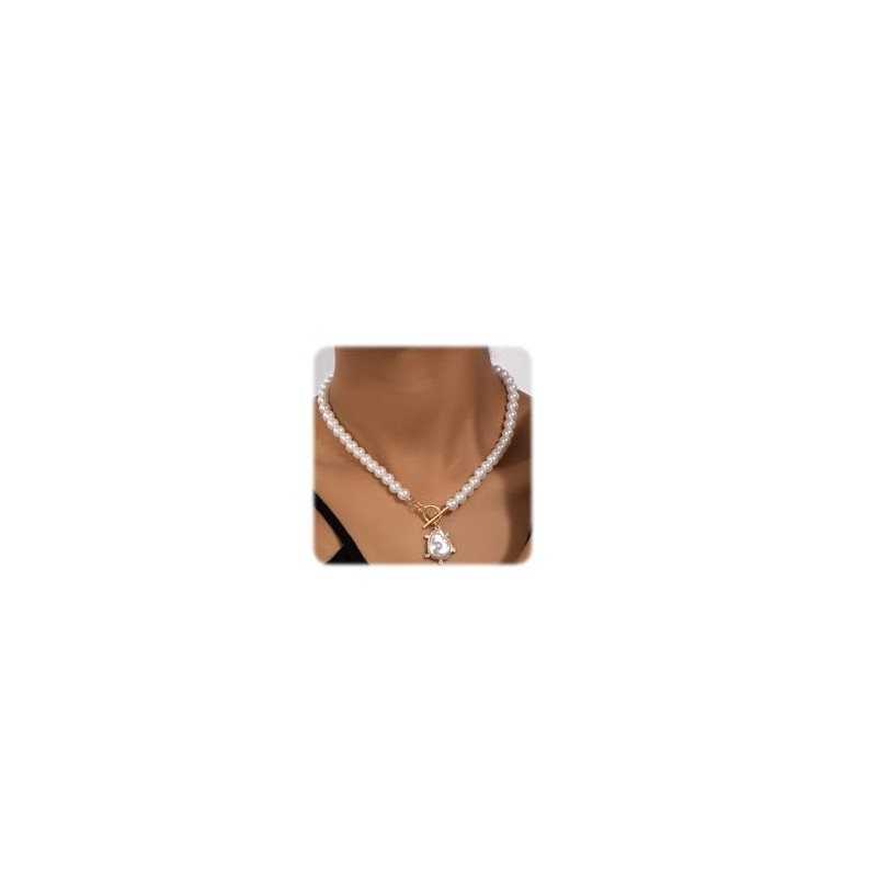 YERTTER Pearl Choker Necklace Bracelet Set Rhinestone Pearl Pendant Chain Collar Choker Necklace for Women (Style 6)