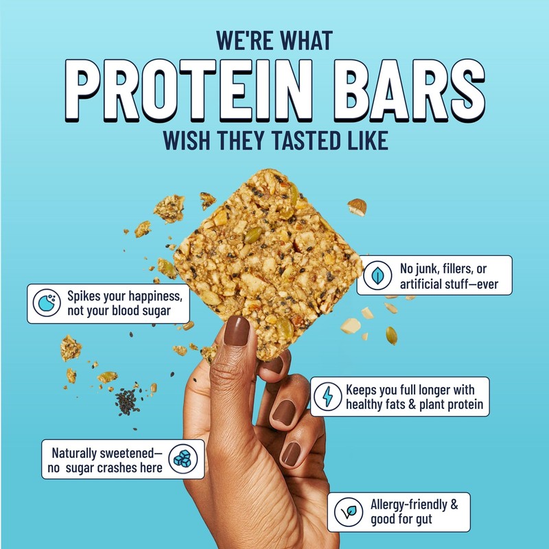 - SAY YES TO THE PERFECT SNACK, ANYTIME - The perfect bite from breakfast to dessert, these healthy bars have 20 grams of nuts and 5 grams of protein that’ll fuel your days and your toughest workouts with a luxurious taste fit to top off any meal