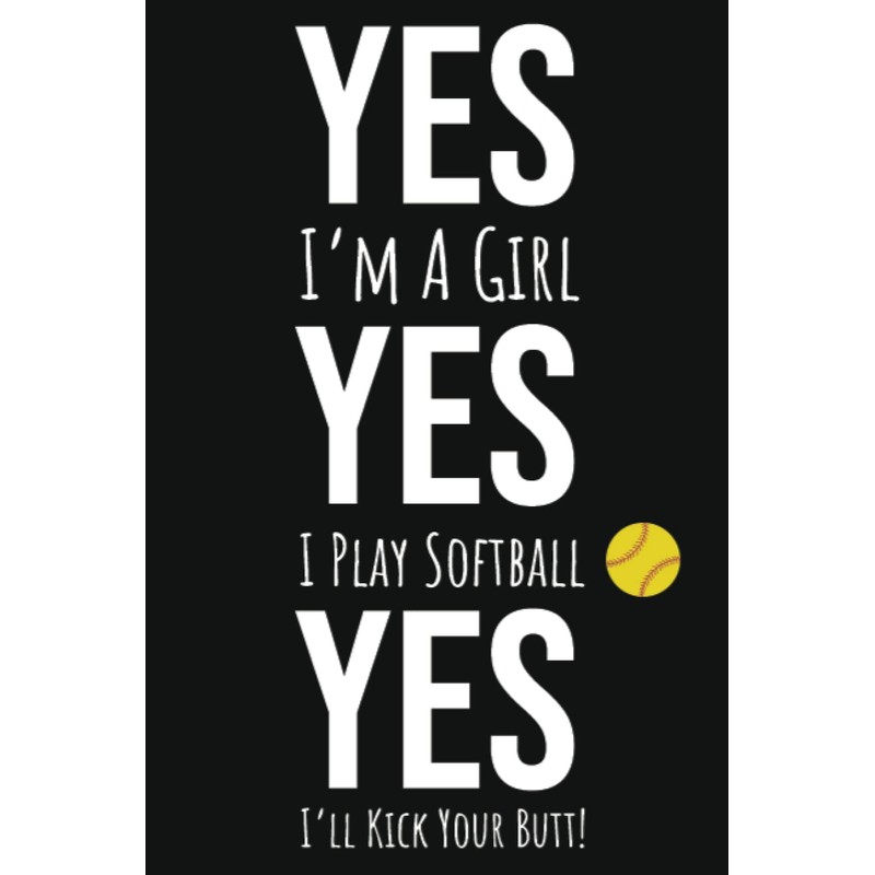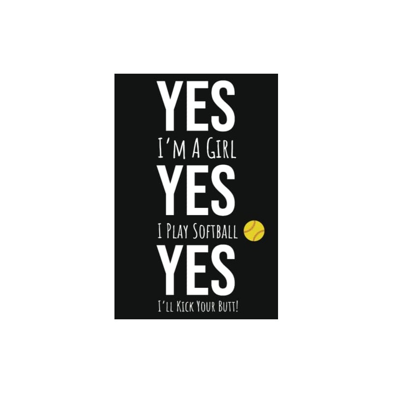 Yes I'm A Girl Yes I Play Softball Yes I'll Kick Your Butt!: Softball Gifts For Girls 8-12, 6x9 Journal To Write In, 109 Pages