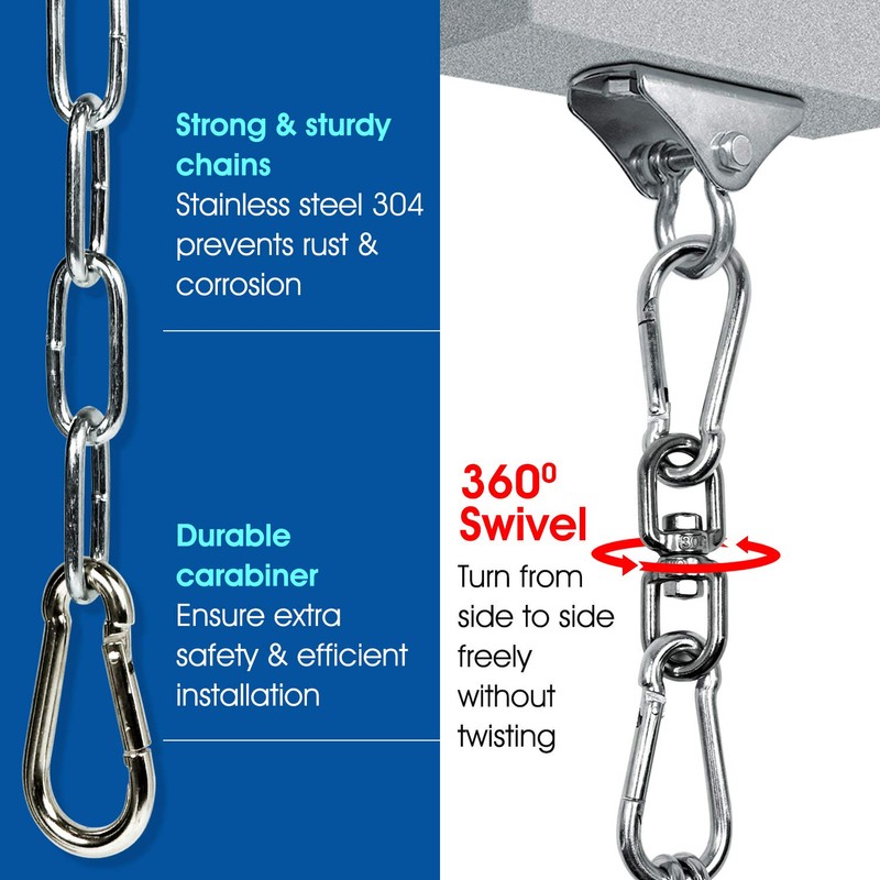 - CORROSION RESISTANT STURDY CHAINS: made from high quality galvanized zinc preventing rust and corrosion, thick chain design ensures durability even when used with heavy weights