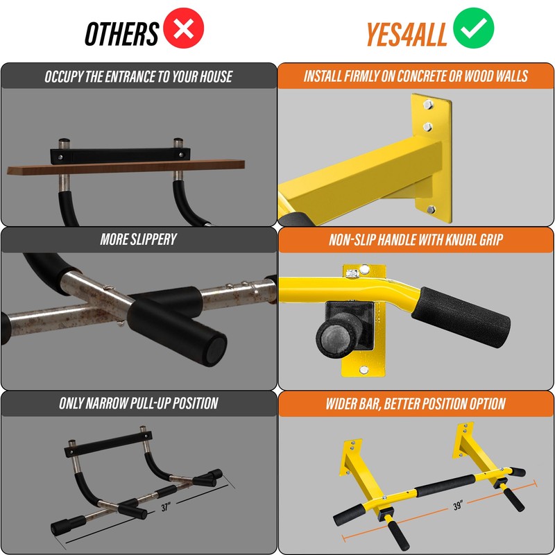 - QUICK AND EASY INSTALLATION: Yes4All Chin Up Bar comes with full instructions and all mounting hardware so that you can get it usable almost as soon as it’s delivered to your home