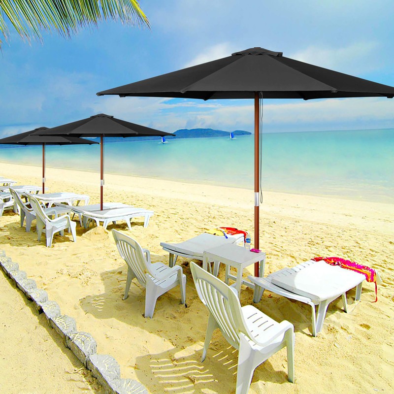 - [Stylish Wooden Umbrella]: 9 ft Wooden Patio Umbrella features wooden ribs & pole to show the beauty of nature, brightening the place with country style, enjoy the leisure time under the umbrella, feels like in a vacation