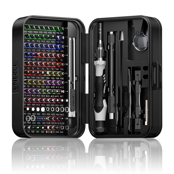 - 【132-in-1 Magnetic Screwdriver Set】With years of electronic disassembly and repair guide data, our technicians have re-upgraded and redesigned the 132-in-1 Magnetic Screwdriver Set to meet all electronic repair needs for home appliances such as televisions, air conditioners, fans and refrigerators. This Magnetic Screwdriver Set can also be used to disassemble and repair mobile phones, digital cameras, watches, eyeglasses, laptops.