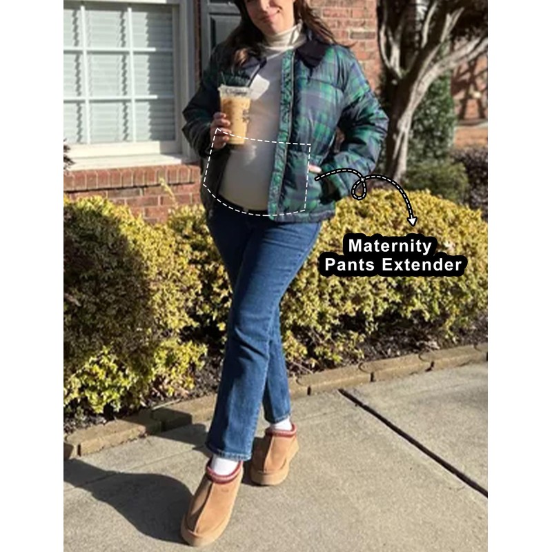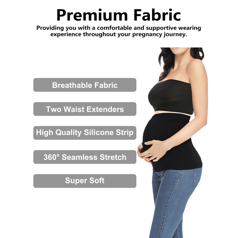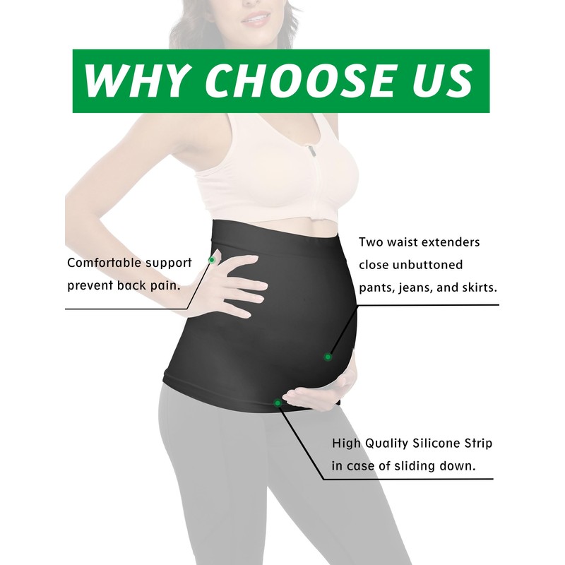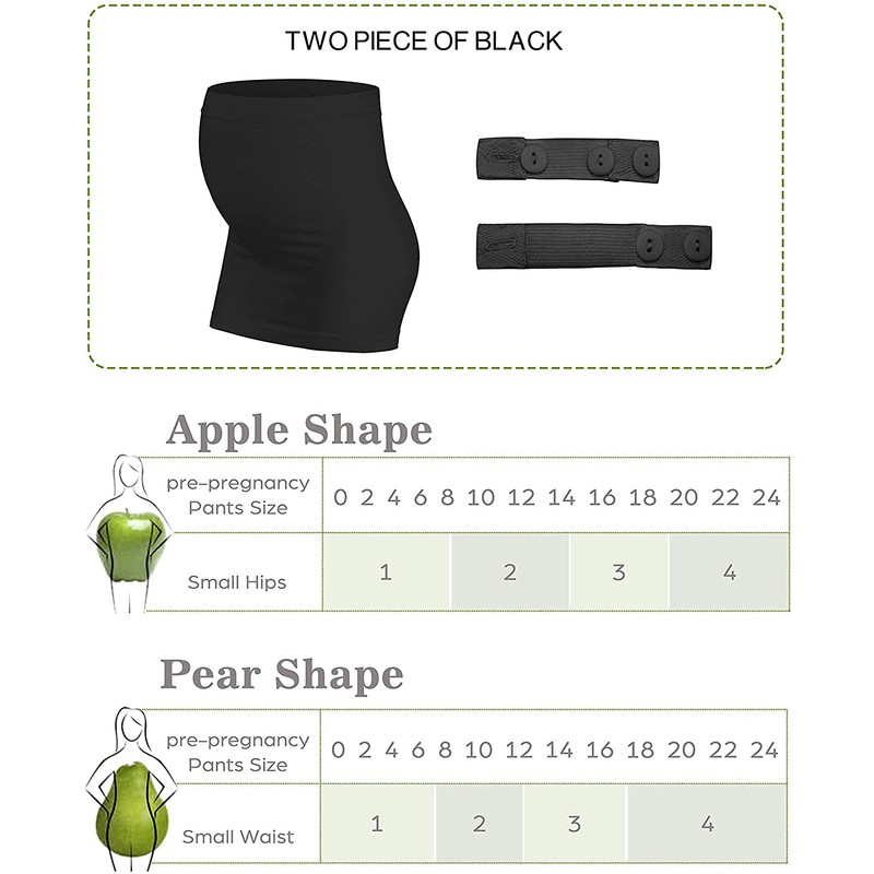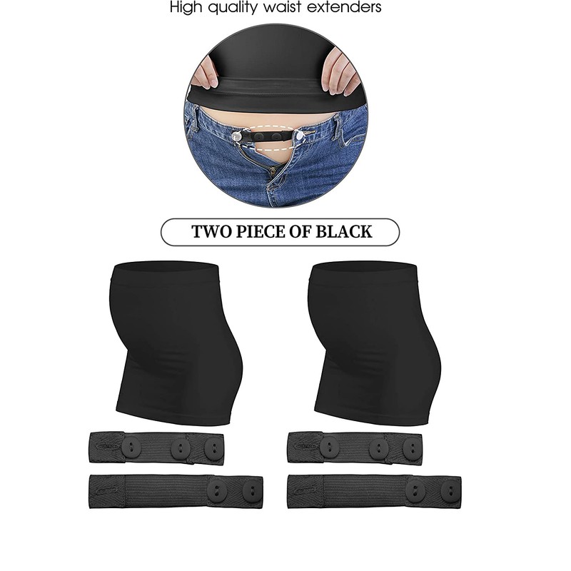 - TWO WAIST EXTENDERS: Maternity belly band with two waist extenders to close unbuttoned pants, jeans, and skirts. One for early pregnancy adds extra length, and another for late pregnancy. And you can also use the belly band as T-Shirt extenders
