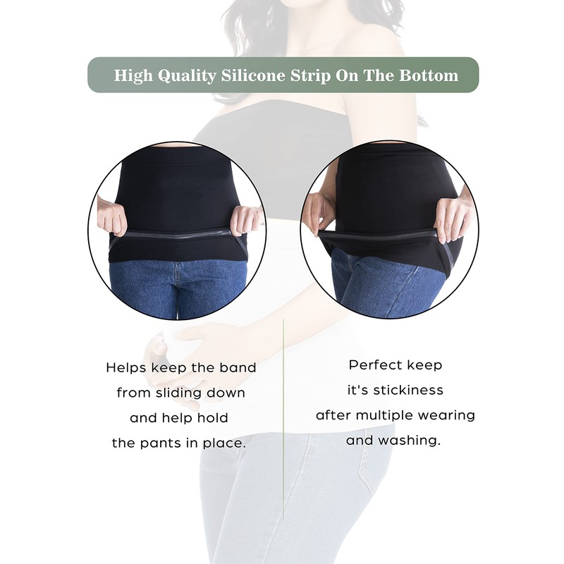 - HIGH QUALITY SILICONE STRIP: Pregnant Belly band with reusable silicone strip in case of sliding down. The silicone strip will not lose its stickiness after multiple wearing and washing