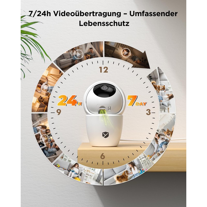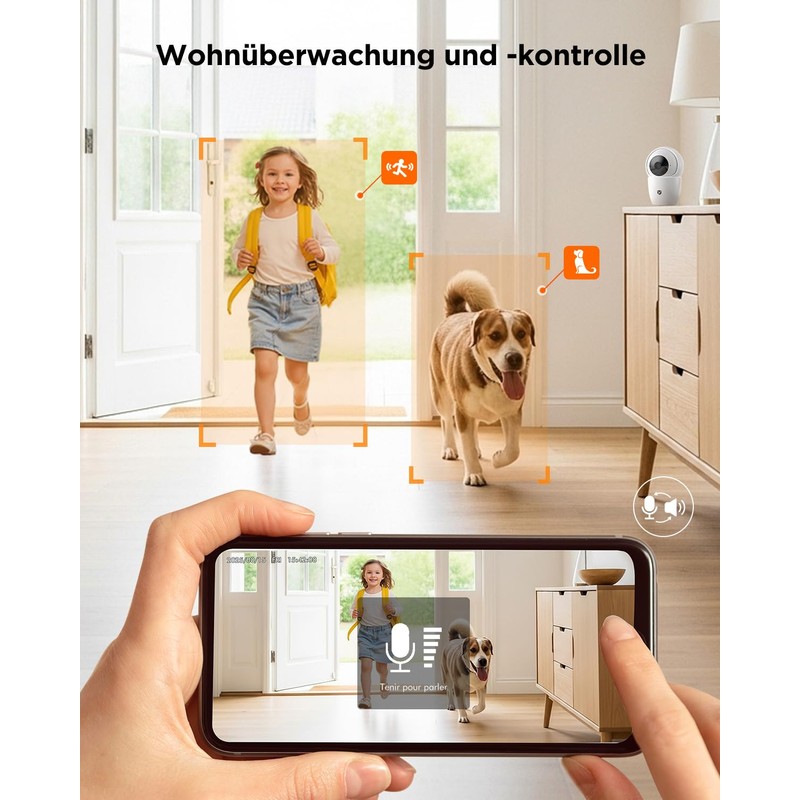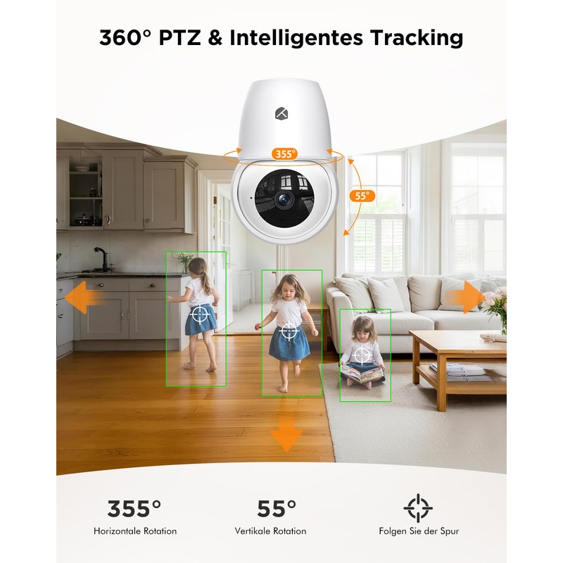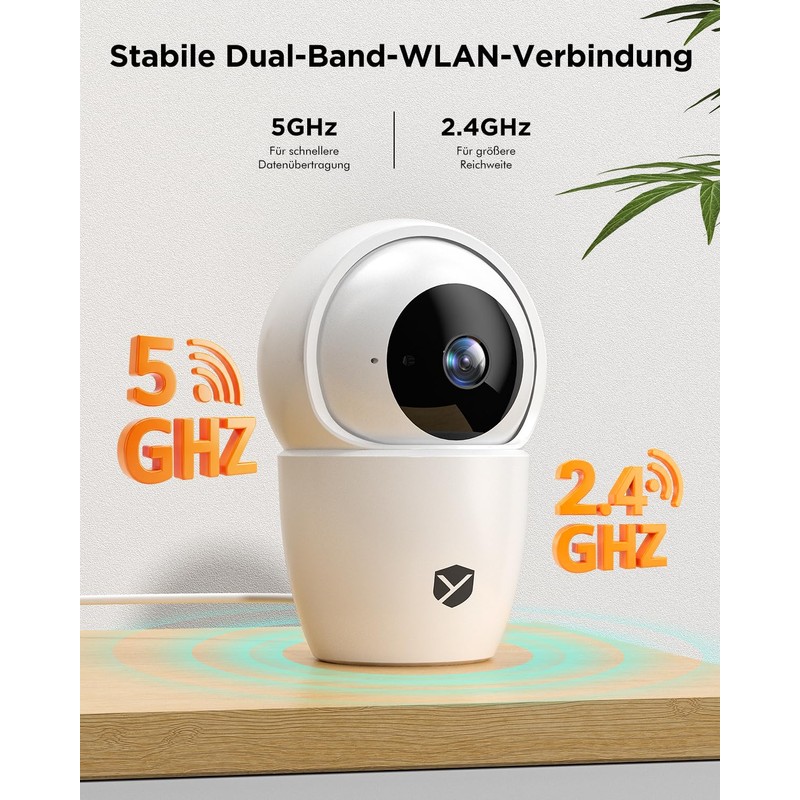 YESKANO 2K Indoor WiFi Surveillance Camera, 360° PTZ Baby Camera, WiFi 2.4G/5G, Automatic Detection of People, Animals and Siren (3MP-2 Pieces)