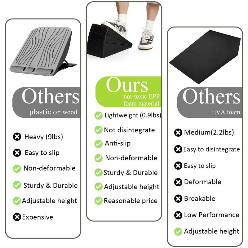 - Multi-scene use. The slant foam board are physical therapy equipment that can strengthens your patellar tendons or stretch your calves. Great for home, office, gym or doing yoga. Beside being used as a slant board, these slant boards can also be used a foot rest.
