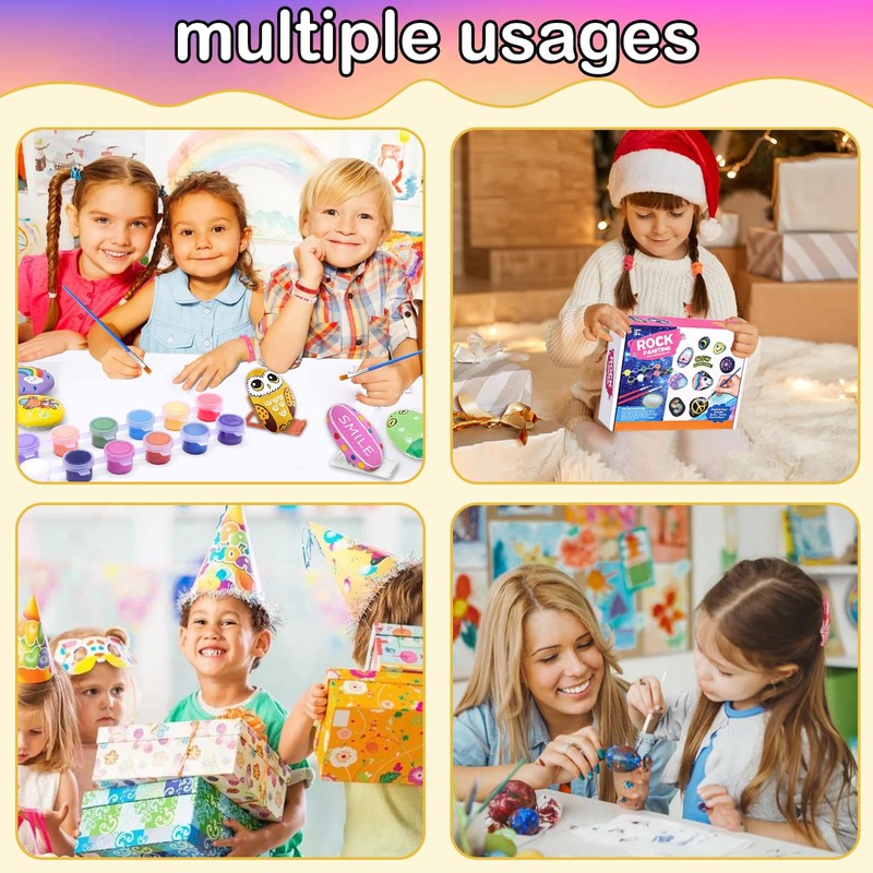 - Perfect gift: stone painting set children is also a perfect personalised gift for boys and girls aged 3+, school classroom art projects, party favour, family craft activity, gifts exchange, birthdays, Christmas stocking stuffers, Easter, Halloween, colouring gifts, and more
