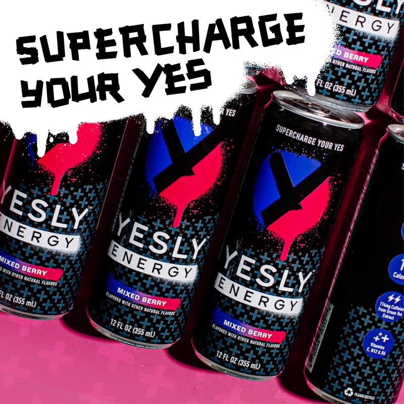Yesly Energy - All Natural Clean Energy Drink - Zero Sugar Functional Energy – 114mg of Green Tea Extracted Caffeine Per Serving - Mixed Berry, 12 Fl Oz (Pack of 12)