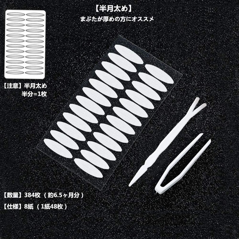 - Half Moon Thick: Recommended for those with thick eyelids; Half moon thinner; Recommended for those with thin eyelid eyelids; Oval: Recommended for those with normal thickness of eyelids