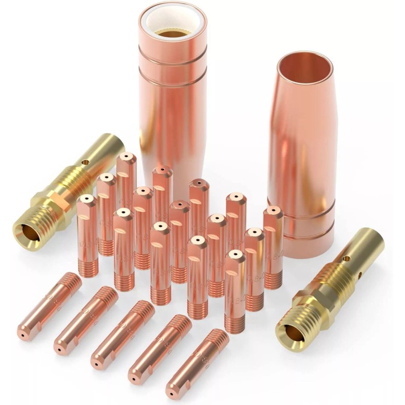 - 2-pcs gas nozzles 21-50 (1/2"), 20-pcs contact tips 11-30 (0.030") and 2-pcs gas diffusers 35-50.