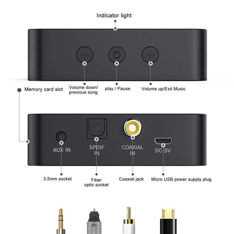 Yet-T6 Bluetooth 5.0 Audio Adapter, Coaxial AUX Audio Adapter for Fibre Optic for Integrated Signal Antenna, No Obstacles, Support A2DP, with 15 Metres Effective