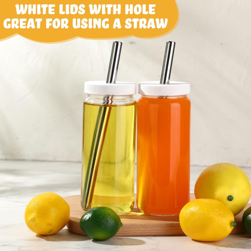 - Product Includes: package includes 6 packs of 16.9oz/500ml glass juice bottles with 6 black lids, 6 stainless steel straws, 6 white lids with holes, 1 brush, suitable for storing fresh juice, smoothies and kombucha; With the smoothie cup with lid and straw, you can enjoy your favorite drink anytime, anywhere