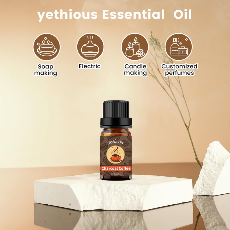 yethious Charcoal Coffee Fragrance Oil - 10ML Charcoal Coffee Scented Oil for Diffusers, Soap, Candle & Bath Bombs Making