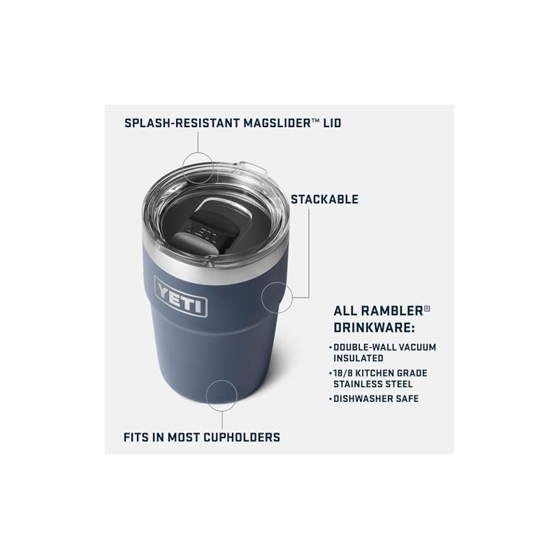 YETI Rambler Cup, Vacuum Insulated Stainless Steel Stackable Cup with Magslider Lid, Stainless Steel, 16 oz (475 ml)