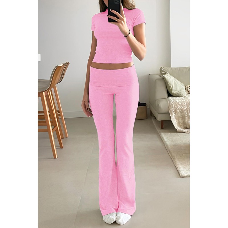 - Sleek and Slim Design: Our short-sleeved tops are designed to contour your shape, paired with fashionable low-rise flare leggings for a flattering, modern silhouette.