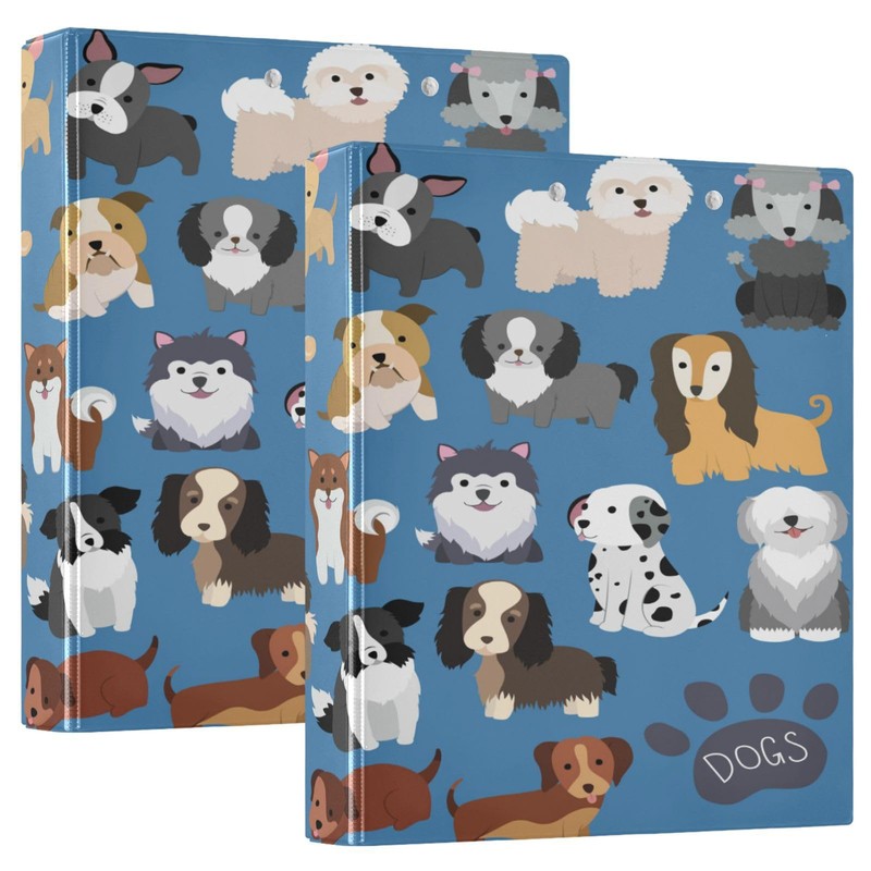 YETTASBIN Cute Dog 3 Round Ring Binders with 3 Interior PVC Clear Pockets, Waterproof Sturdy Basic Binders with Anti-Slip Metal Clip, Versatile Binders Holds 200 Sheets, 1 Pack