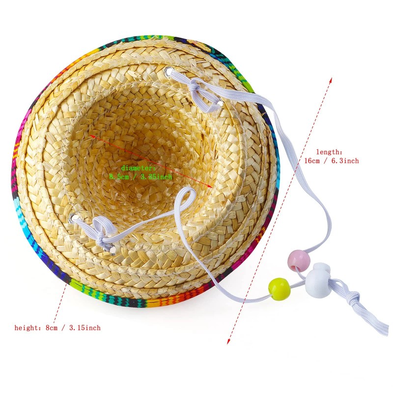 Pet Sombrero Hat - Made of straw-woven, very lightweight. the overall design is simple but classic, colorful brim will add fiesta atmosphere for your pet costume