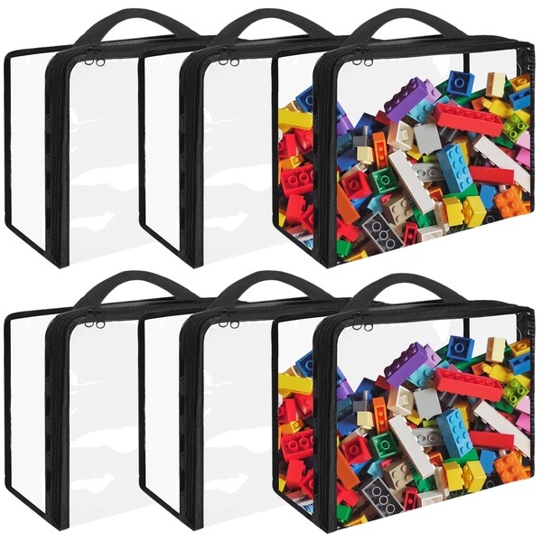 YEXEXINM 6 Pcs Toy Storage Bags, Clear PVC Organiser Bags with Zipper Extra Large Toy Storage Organizer with Handle Waterproof Storage Bags for Building Blocks, Puzzles, Clay, Small Models