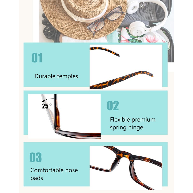 - Wide Applications: portable reading glasses are suitable for most women and men, keep a pair of reading glasses in different places, so you always have a pair handy, suitable for your business activities and daily use, giving you a clear visual experience