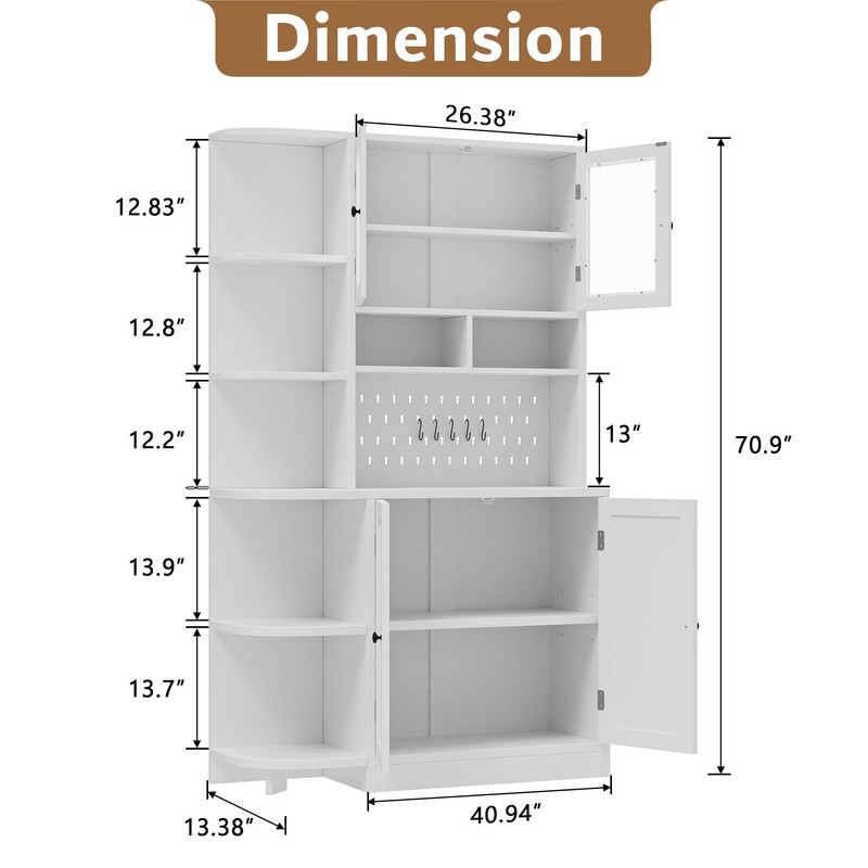 - Flexible Space Storage: The hutch cabinet with storage sized at 41"W × 13"D × 71"H, with a large countertop, 7 open shelves, 2 cabinets with glass door and 2 enclosed. It features an abundant storage design, offering ample, categorized space that enables you to fully utilize your spatial imagination to systematically organize your items