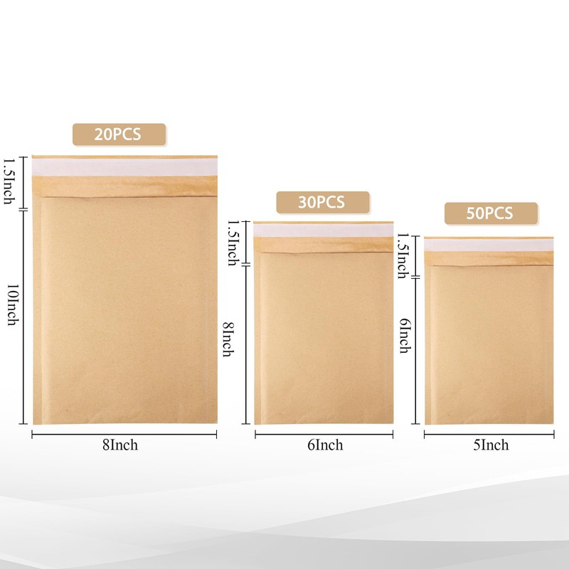 - Size Set: you will get a package containing 100 kraft bubble bags; The size and quantity of the 100 pack kraft bubble bag combination are 50 pcs of 5 x 6 inches, 30 pcs of 6 x 8 inches, and 20 pcs of 8 x 10 inches; The multi size combination allows the Kraft Bubble Mailers to be suitable for books, invoices, photos, cards; You can choose the Padded Envelopes you need according to the size of the item