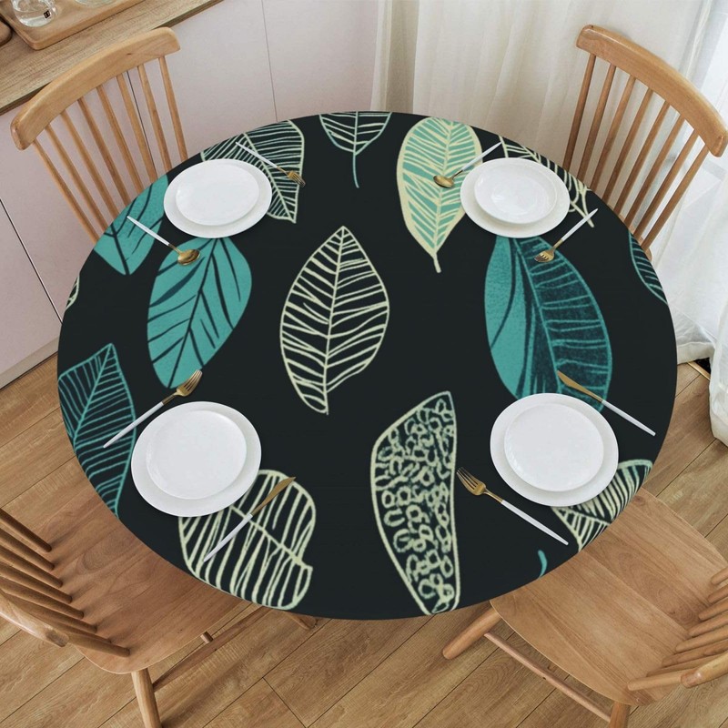 Yeylyn Modern Leaf Round Fitted Tablecloth with Elastic Table Cover Waterproof Wipeable, Round Elastic Tablecloth 45"-50", Circle Table Cloth for Picnic, Dining, Outdoor