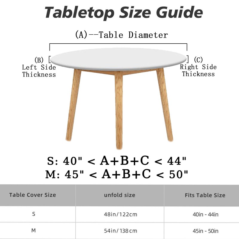 - Size Choice: The fitted tablecloth offers two sizes, S: 40-44 inches; M: 45-50 inches. Please choose according to the measured table size and thickness to bring a tailor-made elegant look to your table