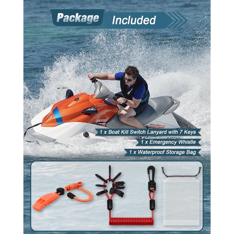 - Universal 7-Key Boat Kill Switch Lanyard: Engineered with 7 interchangeable keys for seamless compatibility with Mercury, Yamaha, Honda, Tohatsu, Johnson, Evinrude, and Suzuki jet skis. This vital safety tether instantly cuts engine power when detached, preventing runaway vessels.