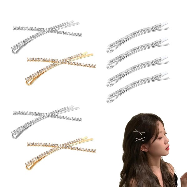 YFFSFDC ヘアピン 8個セット 前髪ピン ヘアアレンジ キラキララインストーン付き 可愛い おしゃれ 女の子 髪留め アクセサリー ゴールド&シルバー