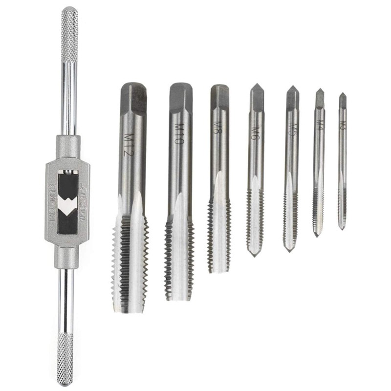 - Product Specifications: Material: Bearing steel; Weight: 8.8 oz (250 g); Set Includes: 1 tap wrench + 7 taps