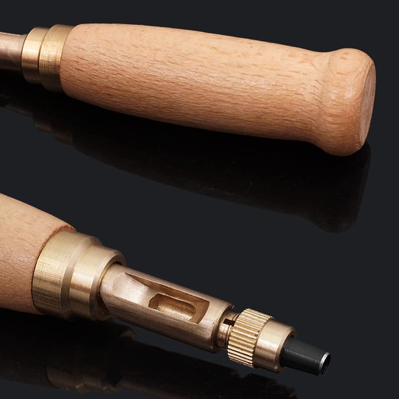 - The handle is made of raw wood that feels good to the touch, and the overall ergonomic design allows you to comfortably hold the punch. The front end is made of brass that is resistant to oxidation and corrosion