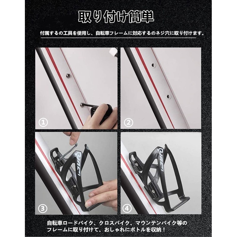 - Package Contents: Bicycle water bottle holder x 2, Allen wrench x 2, Screws x 4. The drink holder is lightweight, but strong, stable, toughness, stable, and stable, so you don't have to worry about any damages. Perfect for road bikers who want light weight