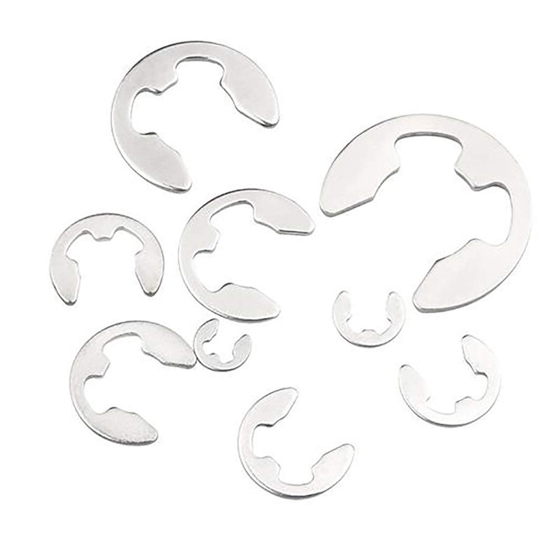 YFFSFDC E-Clip 120 Pcs with Storage Case, Stainless Steel, E-Shaped Snap Ring, Repair and Securing Parts, Snap Ring, E-Shaped Retaining Ring, Durable, Oil Resistant