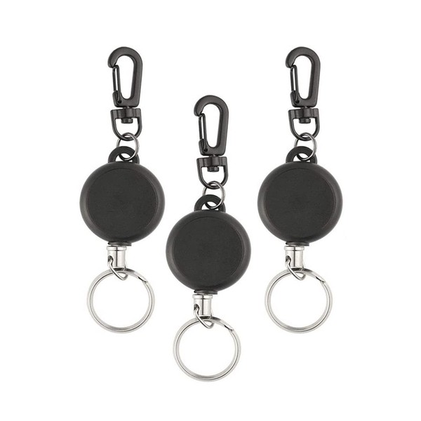 [YFFSFDC] Reel Key Chain with Carabiner, Reel Strap, Stretchable, Anti-Lost, Keychain, Black, Set of 3, Black