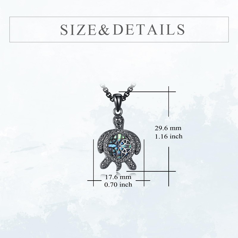 - 🐢Sterling Silver Black Turtle Necklace🐢 abalone black turtle necklace pendant is made of high quality 925 Sterling silver, which is hypoallergenic, nickel-free, lead-free and cadmium-free, especially for those with sensitive skin. Beautiful abalone celtic turtle pendant, excellent workmanship, nice construction, comfortable to wear, celtic turtle necklace for women suit most costume and daily wear, home and office.