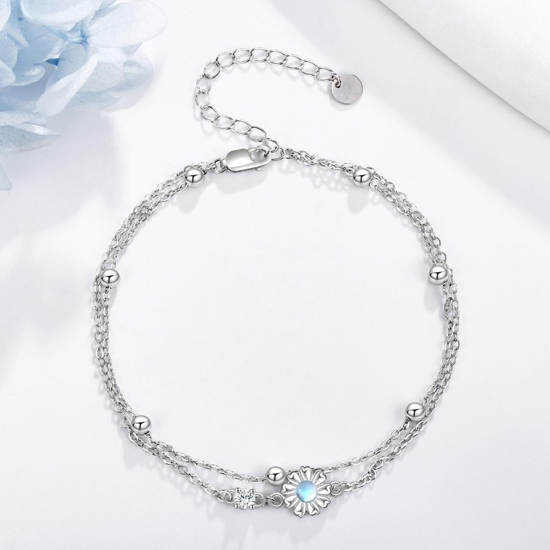 - ✿ Material:925 Sterling silver daisy moonstone ankle bracelet,hypoallergenic,tarnish resistant, nickel-free,lead-free,cadmium-free and does not contain any allergic element,safe for sensitive skin.