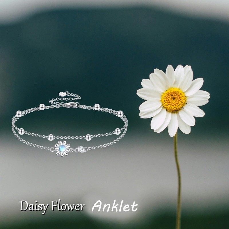 - ✿ Design: Daisy flower ankle bracelet,beautiful daisy flower inlaid with created moonstone,layered anklet style,unique,elegant and charming.A perfect gifts to give someone you love.