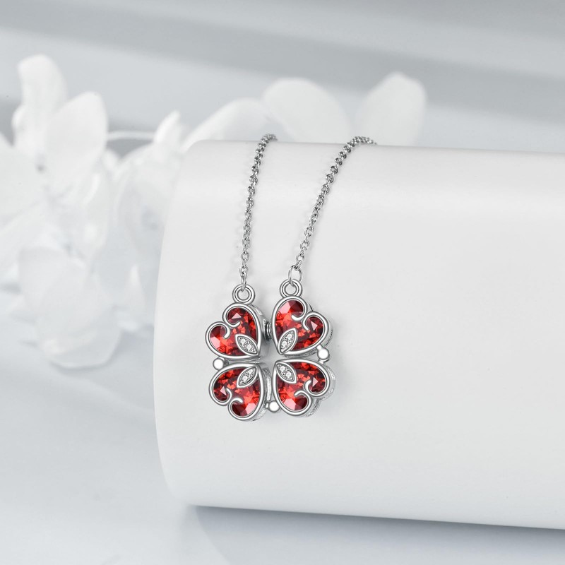 YFN Four Leaf Clover Necklace for Women Sterling Silver Moonstone Heart Shaped Convertible Pendant (red)